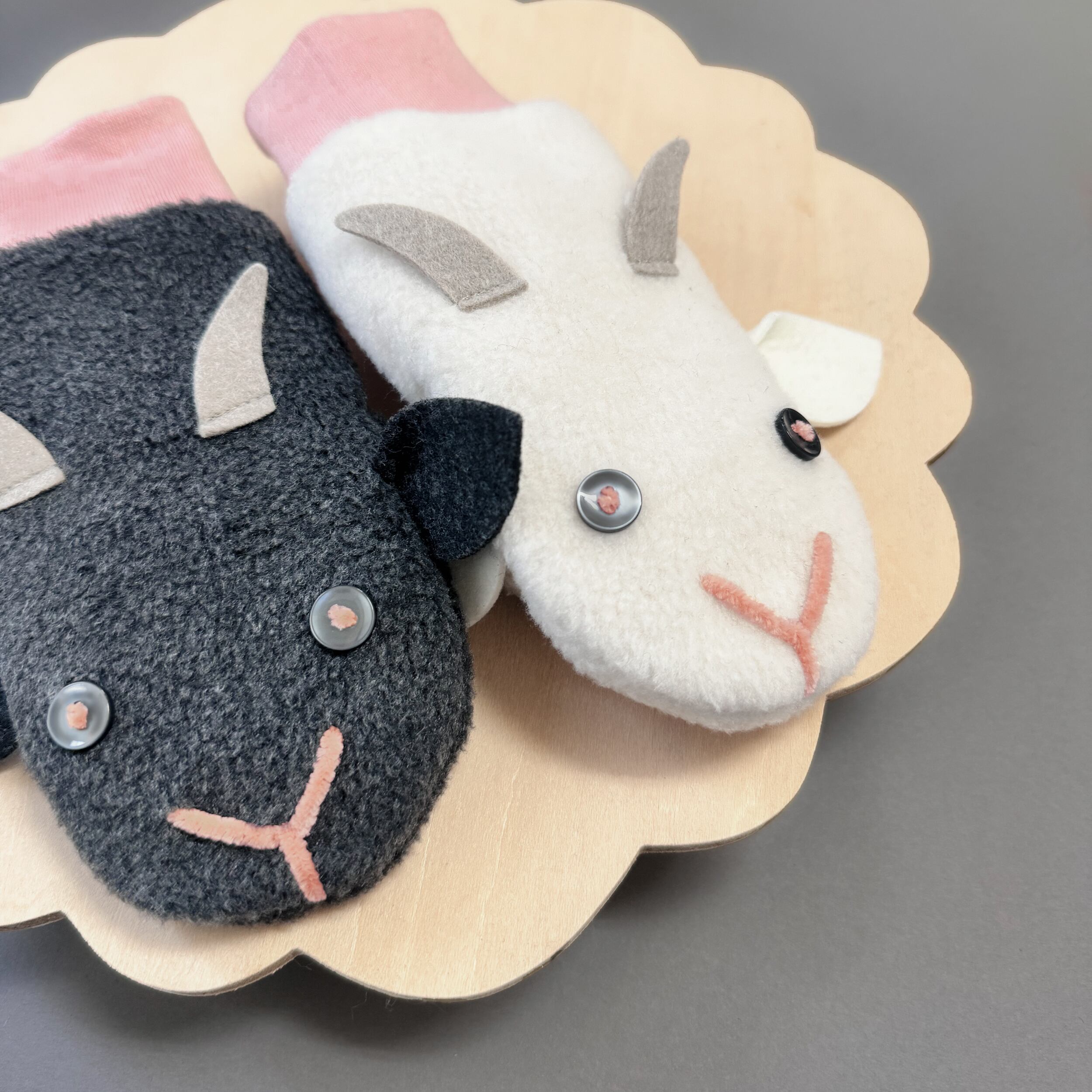 童謡「やぎさん郵便」をモチーフにした、こども用のミトンです。おとぼけ顔のやぎのミトンは、パペット人形みたいで子供も大喜び♪